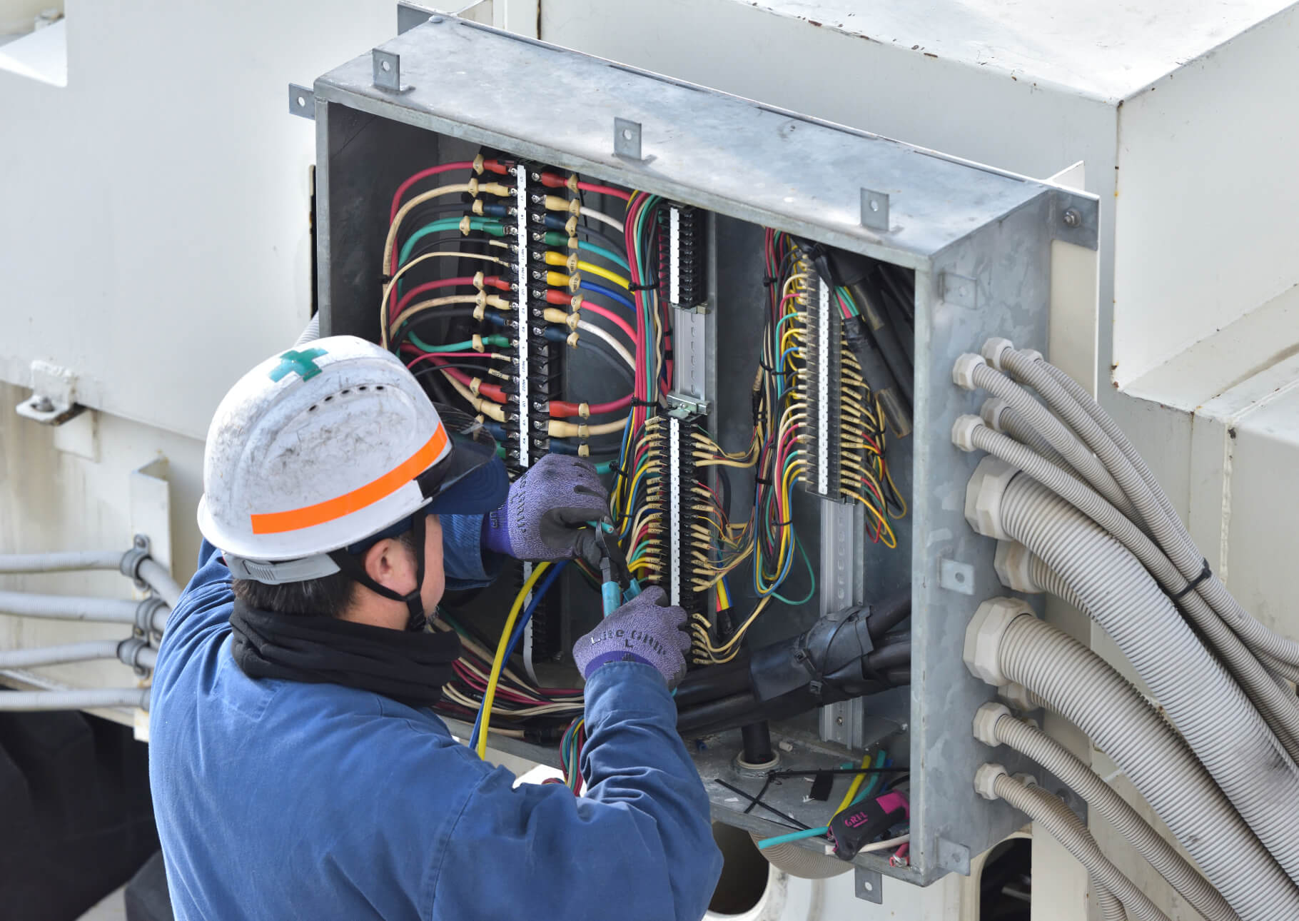 OA機器用の電源配線、看板・サイン照明、厨房設備用200V電源、防犯カメラやWi-Fi用回路工事など、事務所・店舗の幅広いニーズに対応。さらに工場・倉庫では、動力配線や制御盤改修、高圧受電設備、非常用発電機設置など専門性の高い工事も可能です。課題に応じた提案で、稼働率や安全性の向上をサポートします。
